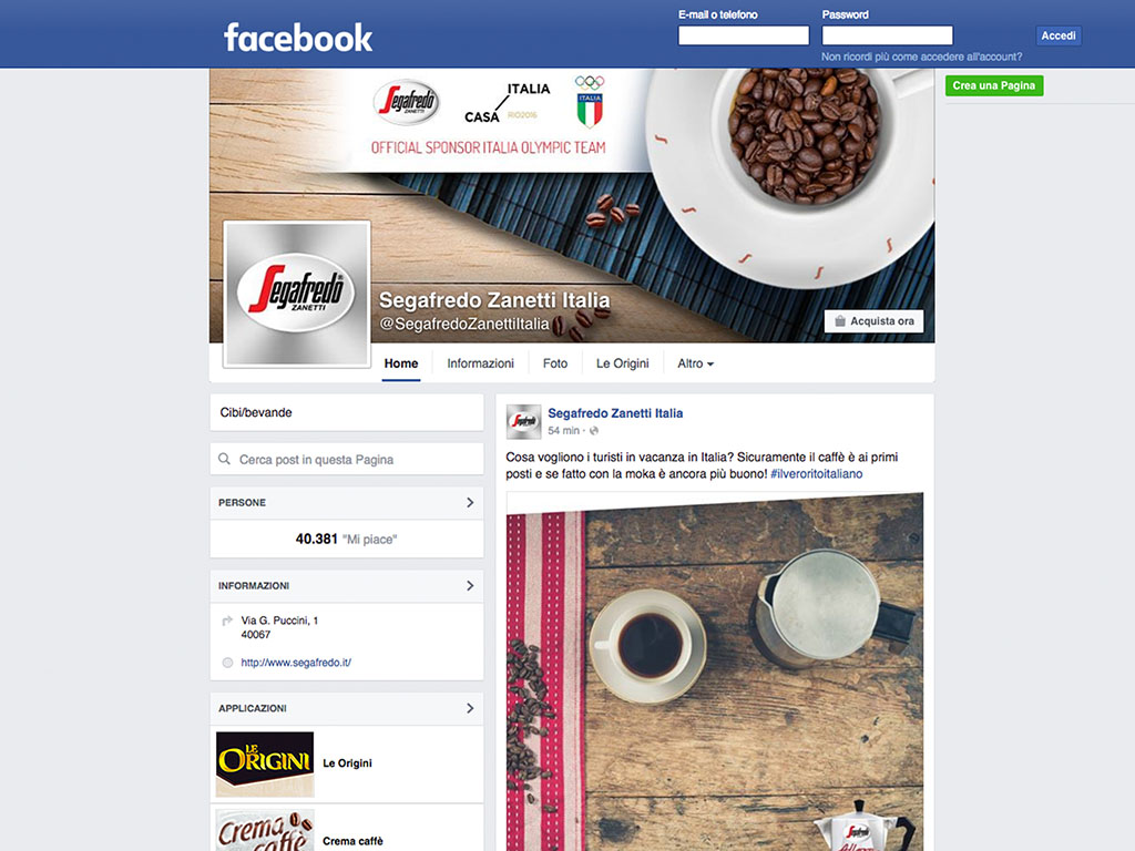 Segafredo Zanetti Coffee System, leader nella produzione di macchine per il caffè a cialde, decide di spostare la pausa caffè sui social network, costruendo velocemente una base spontanea di fan e stimolando commenti ed interazioni. goNet gestisce gli account dell'azienda su diversi social network.